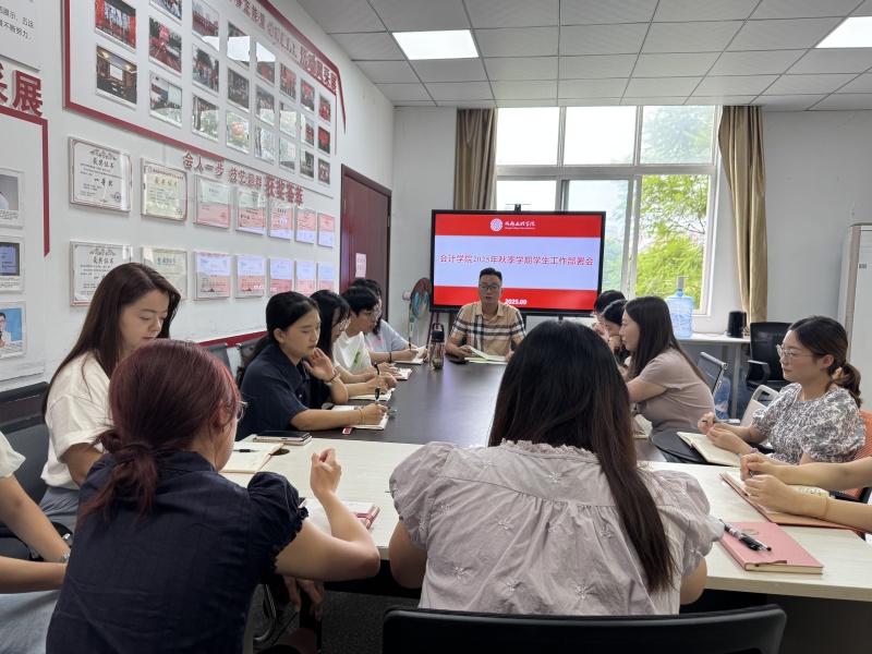 为扎实推进2025年秋季学期学生工作,会计学院召开2025年秋季学期学生工作部署会,李晓卫对各项工作的时间节点与责任分工进行细化说明。