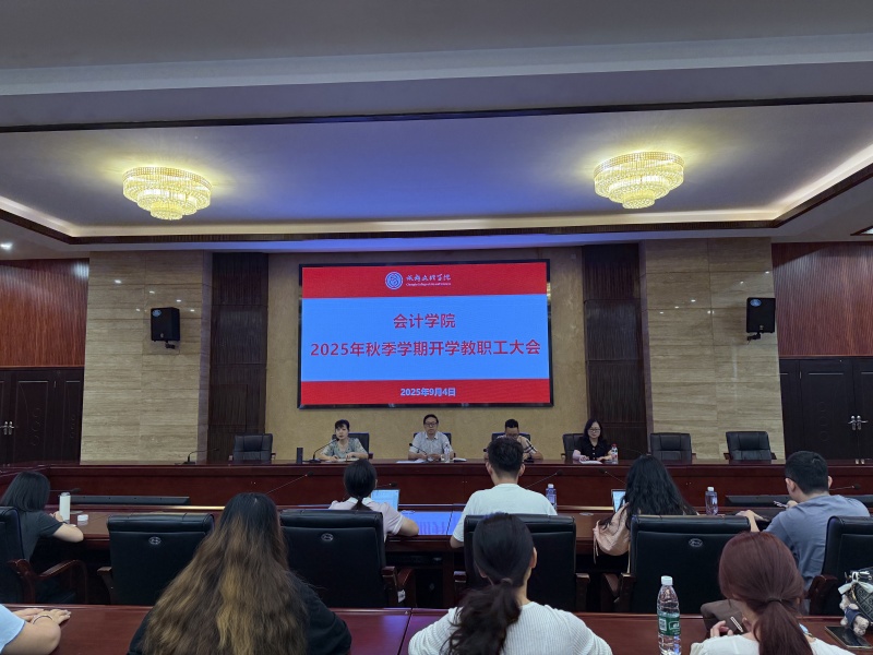会计学院在学工部211会议室召开2025年秋季学期开学全体教职工大会,本次大会旨在全面总结学院上半年工作成果,科学研判发展形势。