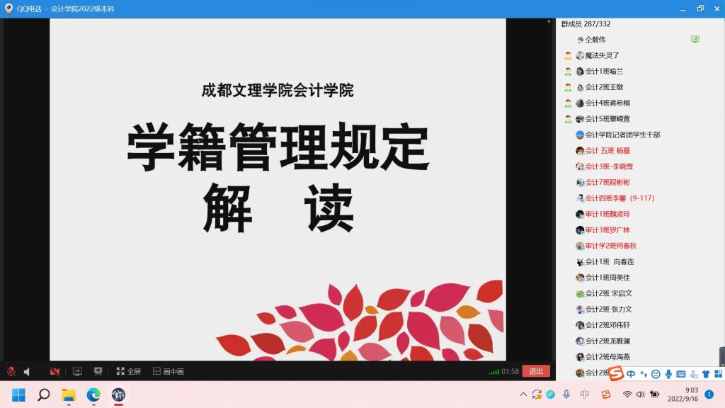 月日至日为使新生更快了解大学的学习生活帮助新生顺利适应大学生活。会计学院在线上开展级新生学籍管理规定教育及学生管理规定教育。会计学院学生工作办公室主任李晓卫会计学院学生一支部书记宋亮波会计学院教学秘书仝毅伟分别对级新生开展了专题讲解。专题教育中仝毅伟从学籍管理、学业管理、入学与注册、学分构成及要求等方面向同学们进行讲解使新生能够对学籍管理规定得到基本了解李晓卫、宋亮波分别从规章制度、考试违纪、寝室