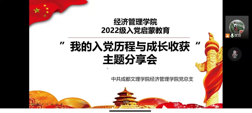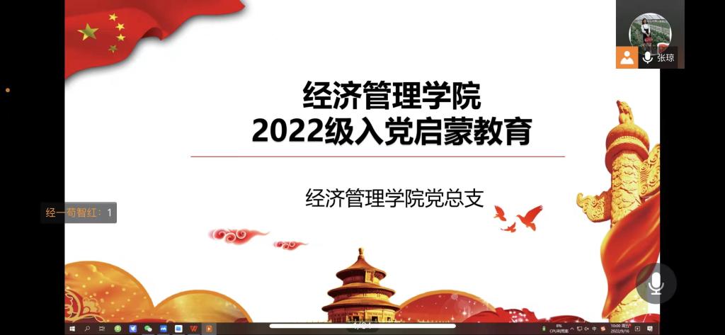 月日上午:为引导新生端正入党动机深入了解中国共产党的奋斗历程经济管理学院通过腾讯会议组织开展早日站在党旗下新生入党启蒙教育活动级全体新生参与。学生第一党支部书记张琼担任主讲人她以站起来、富起来、强起来为线索带领同学们追忆中国共产党波澜壮阔的发展历程感受共产主义信仰的魅力和力量并阐述了新时代大学生加入中国共产党所应肩负的历史使命和时代责任。同时她指出青年的成长离不开党的教育号召同学们认真学习党史树立