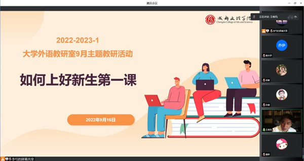 月日外国语学院大学外语教研室和英语专业教研室在李芍、彭阳华和余霞主任的组织下分别召开如何上好新生第一课的全体教师线上会议。李芍、彭阳华和余霞三位主任分别从授课准备和授课要求两方面阐述教务处对开学第一课的具体要求在互联网信息时代言论不慎后果不堪设想因此全体教师老师必须坚持正确思想理念、严守纪律、谨言慎行在思想、意识和行动上都充分做好行课准备。在实施方案上要从备教师、备教材和备学生三方面着手提醒老师们