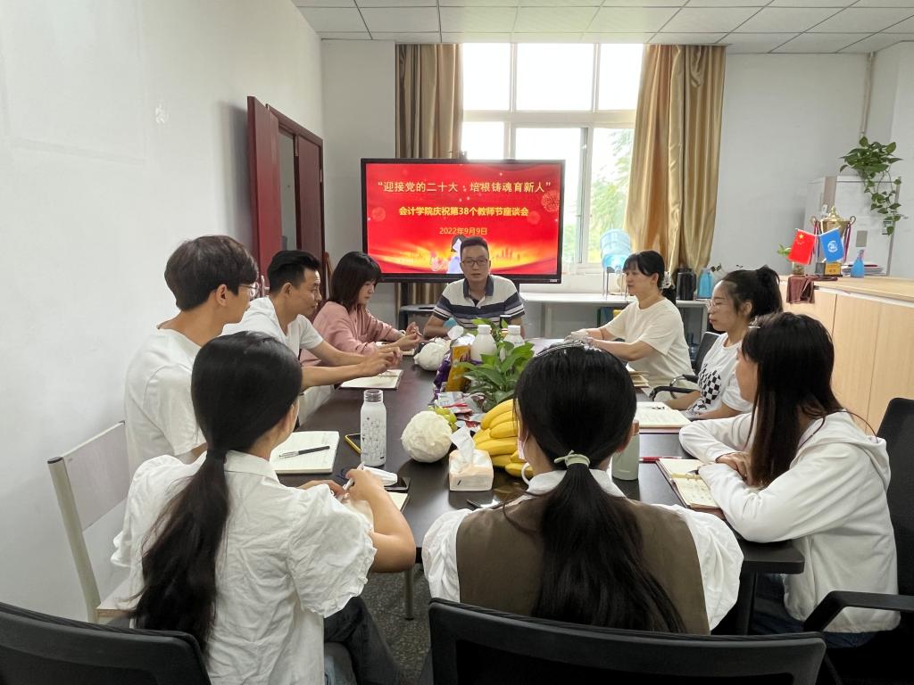在第个教师节到来之际月日时分会计学院在举行迎接党的二十大培根铸魂育新人教师节座谈会。党总支书记吴操、学工办主任李晓卫及全体辅导员参加了此次会议。与会老师围绕今年教师节主题和实际工作展开了分享交流新进辅导员分享了自己初为人师的喜悦与迷茫以及对岗位的认识和自我成长并对年限较久的老师们给予的悉心帮助和指导表达谢意其他老师分享了自己在工作岗位上的经验、收获、成长和对未来的规划。分享交流后吴操对大家过去的工