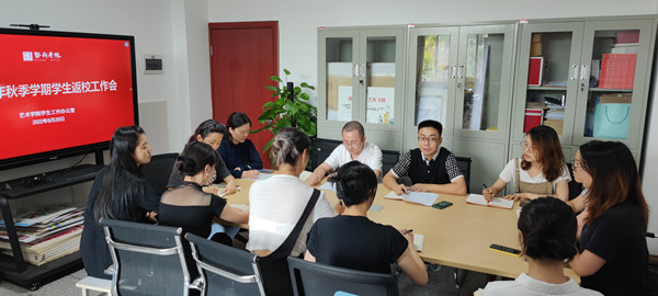 为做好年秋季学期开学前相关准备工作确保新学期学生工作有序开展月日下午艺术学院在行政楼召开了年秋季学期学生返校工作安排会议。学院党总支书记黄鑫、学生工作办公室主任文苛如及全体辅导员参加会议。会上黄鑫指出当前成都市疫情防控形势异常复杂严峻全体老师要把疫情防控放在第一位不折不扣地落实学校防控措施。他就秋季学期学生返校工作作出明确要求:一要统一思想提高政治站位。从严从实从细抓好各项任务要将学校关于疫情防控