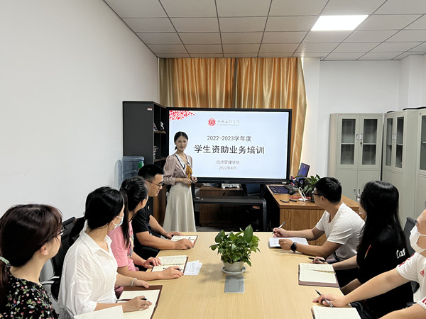 为贯彻落实国家资助政策加大学生资助宣传力度月日下午时经济管理学院于主教学楼开展资助工作专题培训会学院党总支书记李江、学工办主任刘婷及全体辅导员参加培训。赵钰就家庭经济困难认定、国家奖助学金评选、生源地助学贷款统计与回执录入、奖助学金评选以及资助系统录入等各项工作对学院辅导员进行了培训。随后又重点讲解了家庭经济困难学生认定工作国家奖学金、国家励志奖学金和国家助学金的申请、审核的注意事项。阮如玉依照资