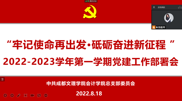 为持续增强工作实效确保开学各项工作的有序开展月日晚时会计学院党总支在线上召开学年第一学期党建工作部署会。会计学院党总支书记吴操、各支部书记及全体党员参加了此次会议。会议就党总支新学期的工作进行详细安排并就组织组、宣传组、事务组、青年学生理论学习小组活动等工作进行部署。接着各工作板块的负责人就新学期的工作开展做出梳理各支部书记就新学期的相关工作提出要求。同时会议针对党总支新学期党建工作从思想建设、组