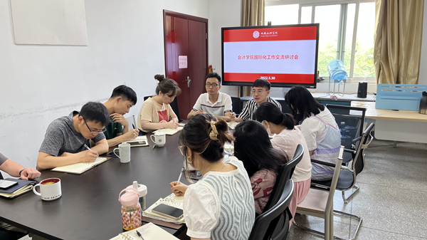 月日上午时会计学院开展了国际化工作交流研讨本次研讨会邀请到了教育学院学生党支部书记潘临锋老师到场进行分享交流会计学院党总支书记吴操主持研讨会全体辅导员参加此次交流研讨会。会上吴操就本次国际化工作交流研讨提出了要求希望全体辅导员要认真参与积极思考当前工作中的问题在本次交流研讨中进行更多的思维碰撞学习他人的长处找准自己的短板更好的为学生发展和成长成才助力。潘临锋就个人开展国际化工作的案例进行交流。他从