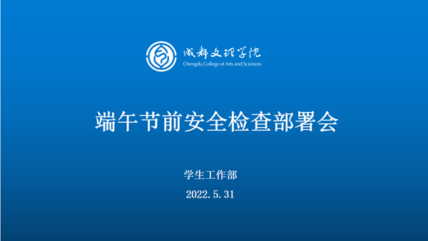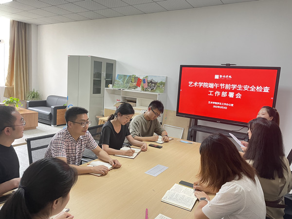 为切实做好校园安全稳定工作及时解决安全隐患月日上午时艺术学院在行政楼召开端午节节前学生安全检查工作部署会。艺术学院总支书记黄鑫、学工办主任文苛如及全体辅导员参加会议。文苛如对端午节假期作出具体安排部署:一是召开端午节假期安全主题班会提醒学生注意夏季安全问题提高安全防范意识。二是根据属地疫情防控要求请提醒同学们非必要不离川、不离蓉遵守学校各项防疫要求。三是注意假期小北打卡工作明确学生假期动向。四是执