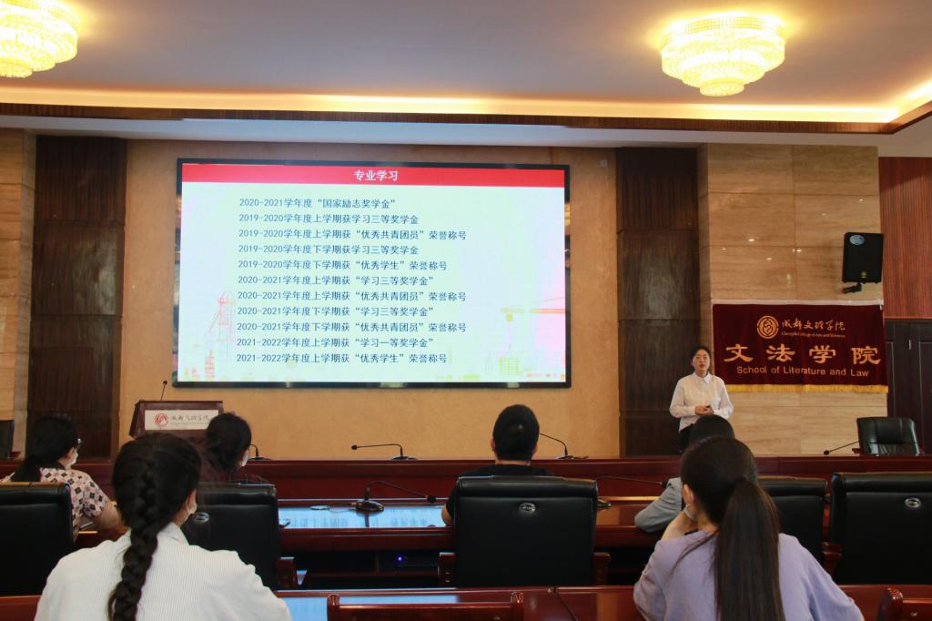 为加强励志感恩教育激励受助学生进一步坚定信念切实发挥大学生朋辈引领作用月日下午时文法学院在学工部举办以筑梦青春自强奋进为主题的励志典型分享报告会。文法学院党总支副书记兼学工办主任李明昌、全体辅导员以及各年级学生代表参会。分享报告会由罗颖颖、李洁两名国家励志奖学金获得者依次上台分享自己入学以来的成长蜕变以及所思所得。罗颖颖结合自身在校学习成果、社会实践经验及志愿服务经历强调学习、实践对当代大学生的重