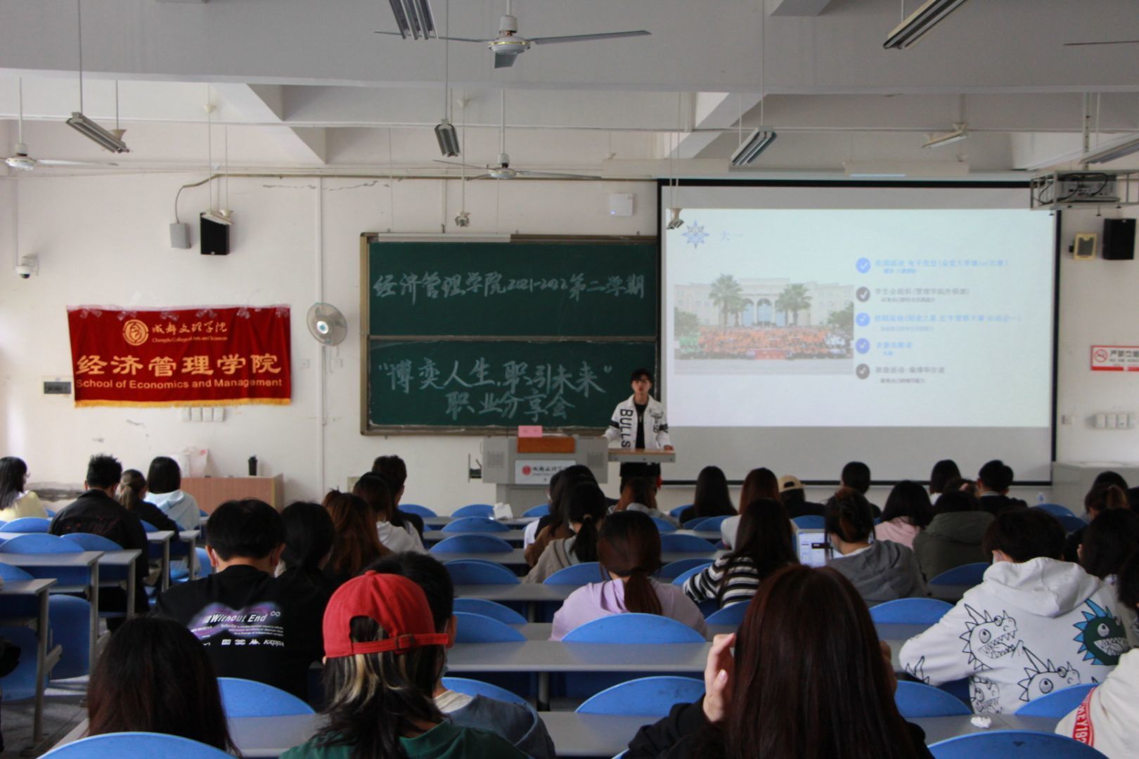 月日经济管理学院于主教学楼举办博弈人生职引未来优秀校友返校分享会。经济管理学院党总支书记李江、学工办主任刘婷、分团委书记陈实出席本次会议级毕业生田平作本次分享人各班学生代表到场参加。会议伊始李江讲话。他首先对优秀校友的到来表示热烈欢迎。随后他表示本次分享会不仅给同学们搭建了一个与优秀校友交流的平台更为同学们提供了把握未来的契机。他强调同学们要利用好在校时间提高自身本领、形成自身核心竞争力以更加积极
