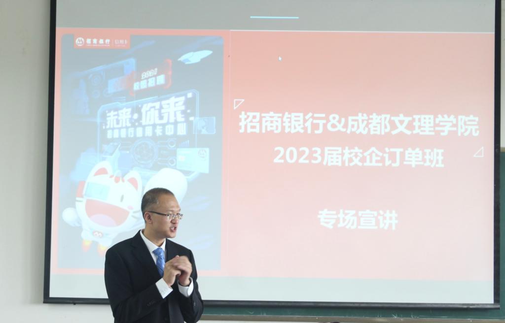 月日经济管理学院携手招商银行于主教学楼教室开展届校企订单班专场招聘宣讲会招商银行成都营运中心风险管理三室主管刘佳宁作本次宣讲会主讲人经济管理学院副院长李瑞强、招商银行信用卡成都分中心成都营运中心总经理助理刘静出席宣讲会经济管理学院级辅导员、级部分学生到场参加。刘佳宁作企业宣讲。他从招商银行的企业文化、经营状况、部门简介、招聘条件、薪资待遇等方面向同学们进行讲解并希望同学们能认可这个行业并从中找到发