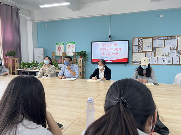 月日中午时分教育学院年月学生思想动态座谈会于召开。党总支副书记肖媛、党总支副书记兼学工办主任袁久斌、全体辅导员老师及寝室长代表参加座谈会。座谈会伊始肖媛介绍了本次座谈会召开的目的和意义。本次会议旨在充分了解学生近期思想动态积极回应学生关心关切的问题有针对性地帮助学生解决实际困难。座谈会上各学生代表积极交流结合自身学习、生活的实际情况就学前教育专业实习、学习环境、学校医疗基础设施以及寝室环境等方面提