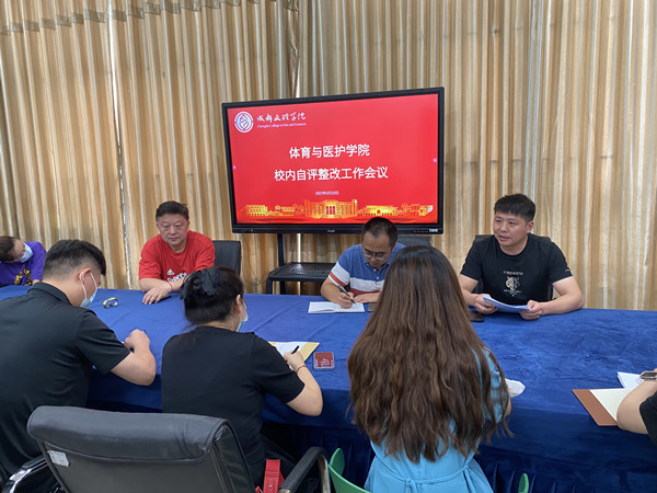 月日体育与医护学院在体育馆会议室召开校内自评整改工作会。体育与医护学院院长张培峰党总支书记刘刚院长助理黄波各教研室正副主任实验实训中心主任、学生工作办公室主任教学秘书骨干教师等参加了会议。体育与医护学院评估工作负责人邓晓明向与会人员传达了月日学校综评处下发的关于做好本科教学合格评估校内自评整改工作的通知文件精神与要求。要求各评估工作小组提高思想认识认真学习、消化、领会校综评处提出的问题和建议并认真