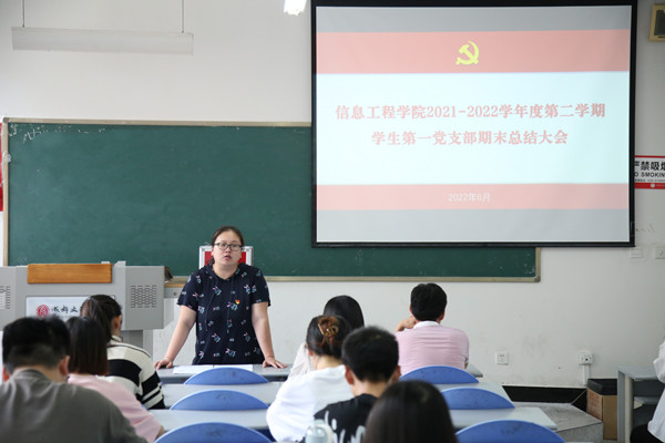 月日中午信息工程学院各学生党支部召开学年度第二学期总结会。全体师生党员参加会议会议由各学生党支部书记主持。本学期各学生党支部为加强学生党员思想引领开展毕业生党员一对一谈话按时开展党组织生活会、党员大会、主题党日活动等如主题辩论赛、党章党史知识竞答、红色书籍分享会、毕业生座谈会等梳理总结先锋进班级;学生党员班导生、青年理论学习小组工作开展情况。学院党总支组织员郭晗昕讲到:临近期末各党员认真复习诚信应