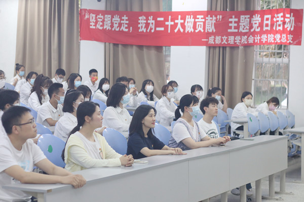 为进一步强化党员的党性修养巩固党史学习教育成果坚定听党话、跟党走的理想信念。月日晚时分会计学院党总支在行政楼组织开展坚定跟党走我为二十大做贡献主题党日活动。会计学院党总支书记吴操、学生工作办公室主任李晓卫、会计教研室主任许新亮、学生一支部书记宋亮波、学生三支部书记杨佳及全体师生党员参加本次活动。活动伊始全体师生通过视频为届毕业生党员同志送上真挚的祝福希望毕业生党员永葆党员本性在工作岗位继续发光发热