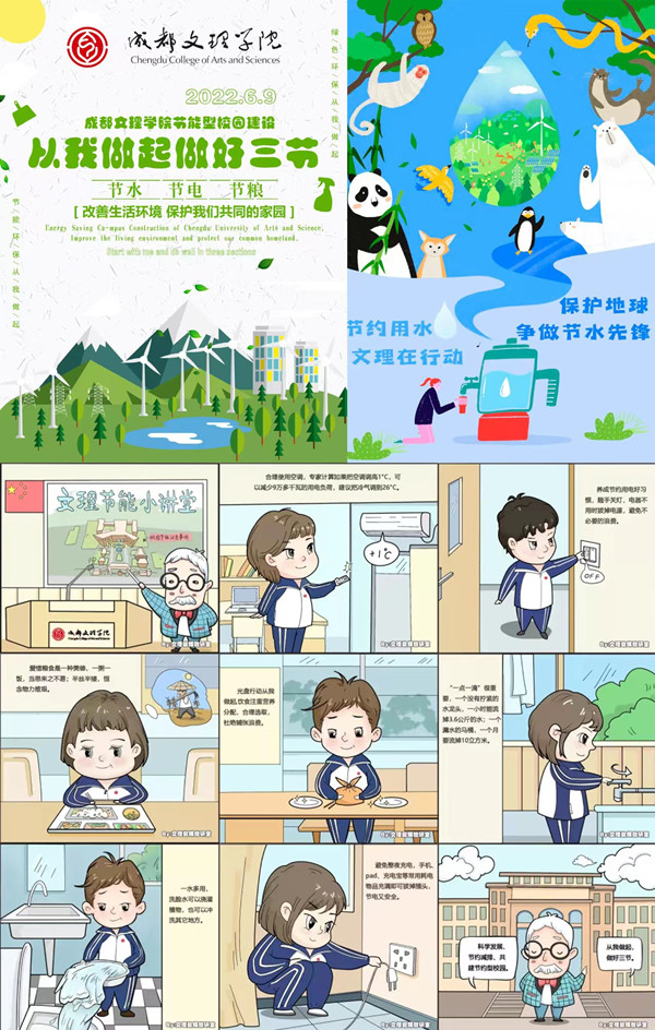 为积极贯彻落实学校节能型校园建设专题会议精神推进学校节能减排工作的开展全面强化师生的节能意识艺术学院开展了节能减排专项工作推进会传达部署相关工作。全院师生积极参与以画说节能减排等系列活动增强师生三节意识。学生工作办公室通过组织多样主题班会活动开展节能减排宣传帮助学生树立生态文明观念培养学生良好的节能意识。辅导员老师们率先垂范以身作则用切身的行动带领同学们将节能减排意识贯彻到生活实践当中为建造良好的