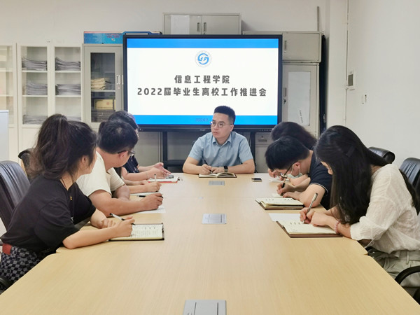 月日上午信息工程学院召开届毕业生离校工作推进会。学院党总支书记贾冲、各学生党支部书记及全体毕业班辅导员参加会议。会议由学工办主任尹隆龙主持。会上各板块负责人介绍了所负责领域涉及毕业生离校工作的准备情况就毕业周期间工作落实情况进行汇报。学院就相关细节进行部署交流进一步明晰责任。尹隆龙谈到毕业班老师要加强毕业生就业安全、法制观念、校规校纪和心理健康教育要组织开展诚信教育、感恩教育、文明离校教育教育学生