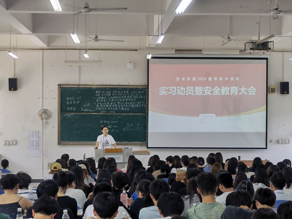月日中午时分艺术学院届专科毕业班实习动员暨安全教育大会在行政楼召开。艺术学院党总支书记黄鑫院长助理魏东环境设计系主任向斌视觉传达设计系主任邓幸数字媒体系主任刘航宇学工办主任文苛如全体实习指导老师毕业班辅导员和全体届专科毕业生参与大会。会上毕业班辅导员文苛如就毕业生实习相关安排进行布置对实习时间与内容、办理离校实习注意事项、实习指导手册线上填报及毕业实习考核管理办法做了详细讲解。魏东指出毕业实习作为