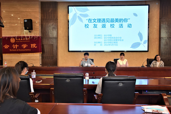 月日下午时分会计学院于学工部举办在文理遇见最美的你校友返校暨学生学历提升分享交流活动。会计学院会计教研室主任许新亮、相关辅导员老师以及各年级学生代表参加此次活动。根据疫情防控要求本次活动采取线下和线上两种方式同时开展本次活动由许新亮主持。带来此次分享的是会计学院届校友胥婧和届校友刘容她们回到阔别已久的母校重温求学时光再叙师生同窗情谊交流学习心得。交流会上刘容分享了她在毕业后的学习生活与在不断的困难