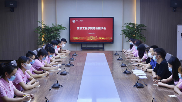 月日上午信息工程学院在第二会议室召开师生座谈会。信息工程学院党总支书记贾冲、学工办主任尹隆龙及学生第三支部书记曾宇出席本次活动学院团学干部、学生代表到场参加。座谈会结合实际情况围绕青年大学习、班团建设、学院特色活动、共青团推优等方面的情况展开积极讨论。学生代表就学院社团如何调动学生的积极性、做好活动组织、推进宣传工作与建立班级的联系等方面提出问题。参会老师认真听取同学们的意见对同学们提出的问题与建