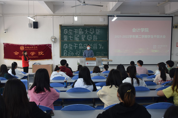 月日中午会计学院于主教学楼教室举召开学生干部大会暨第七届星会计学生干部成长计划启动仪式。会计学院党总支书记吴操、学生工作办公室主任李晓卫、学生一支部书记宋亮波、学生三支部书记杨佳、分团委书记张须鹏各学生组织指导老师、辅导员和学生干部参加。启动仪式上张须鹏肯定了学生干部过去以来在工作中的表现对大家踏实肯干、辛勤付出表示由衷感谢并从加强组织建设、注重思想引领、开展志愿服务等方面作了强调。他希望通过本次
