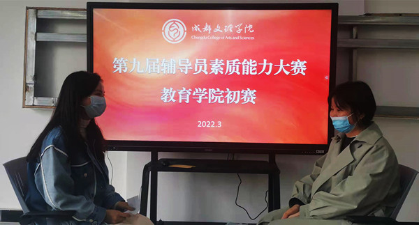 月日下午教育学院在行政楼举行成都文理学院第九届辅导员素质能力大赛学院初赛。教育学院党总支副书记肖媛担任主评委教育学院党总支副书记兼学工办主任袁久斌担任主持人学院全体辅导员参赛。第一项比赛为学生辨识。学生辨识主要考验辅导员对于自己所带班级学生的熟悉程度。辅导员需要在分钟的时间对学生的照片进行辨认说出该学生姓名班级民族奖助及宿舍具体分布情况。学生辨识是辅导员工作开展的基础此次比赛也为日后的辅导员工作的