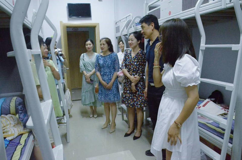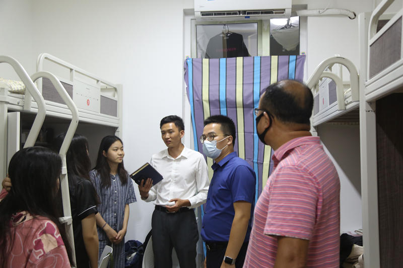 月日晚时分外国语学院院长王维民、副院长李雪琴、党总支副书记苏凌函、学工办主任徐杏及新生辅导员到级新生宿舍进行了走访为新同学们送去慰问和关怀。走访期间老师们与新生亲切交谈细心询问新生到校后的生活和适应情况。同学们与老师说说家常聊聊初到大学的感想现场气氛热烈而温馨。老师们对新生表示欢迎希望新生能够愉快地在学校学习和生活如遇到困难学院会尽最大努力帮助大家为大家提供便利。交谈过程中老师们围绕适应新环境培养