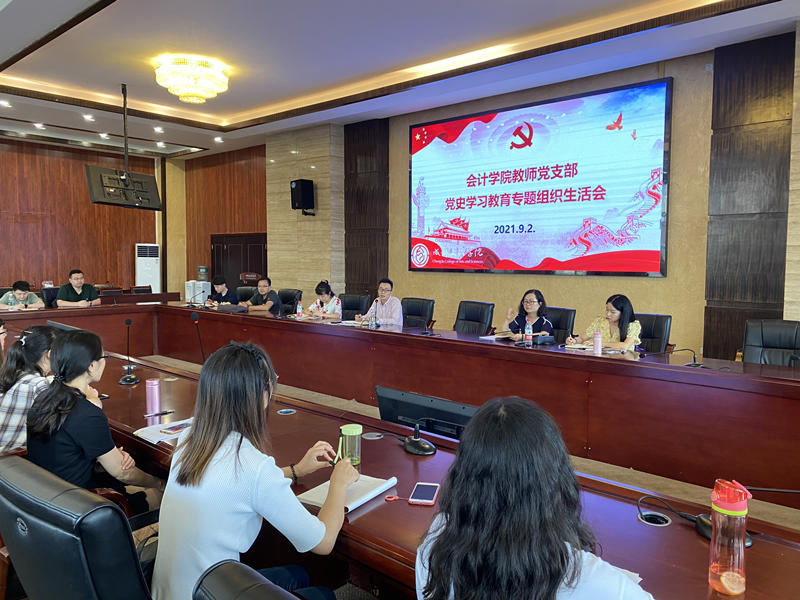 月日至月日期间会计学院各党支部召开了党史学习教育专题组织生活会。会上全体党员同志集体学习观看了建党百年主题视频少年等学习视频深入了解了中国共产党建党百年所取得的伟大成就。会议围绕以下四个方面进行了盘点和检视:一是围绕习近平总书记在庆祝中国共产党成立周年大会上的重要讲话谈学习情况及工作体会二是围绕习近平新时代特色社会主义思想和党中央指定学习材料谈学习情况和感悟收获三是对照党史学习教育目标要求找自身存