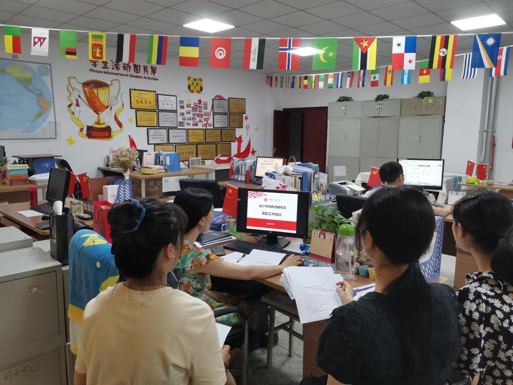 月日下午时会计学院召开了学年第二学期学生工作总结会。会计学院党总支书记吴操、学工办主任孔岩及全体辅导员参加会议。会上孔岩对本学期的学生工作进行了梳理总结特别针对国际化工作、毕业生就业工作、奖惩助贷工作、十二项安全管理规定等重点工作内容进行了说明强调。吴操首先肯定了本学期学工办及每位辅导员老师所做的大量工作并针对本学期的学生日常管理工作、三风建设、党史教育学习活动、国际化工作、毕业生工作、团学工作、