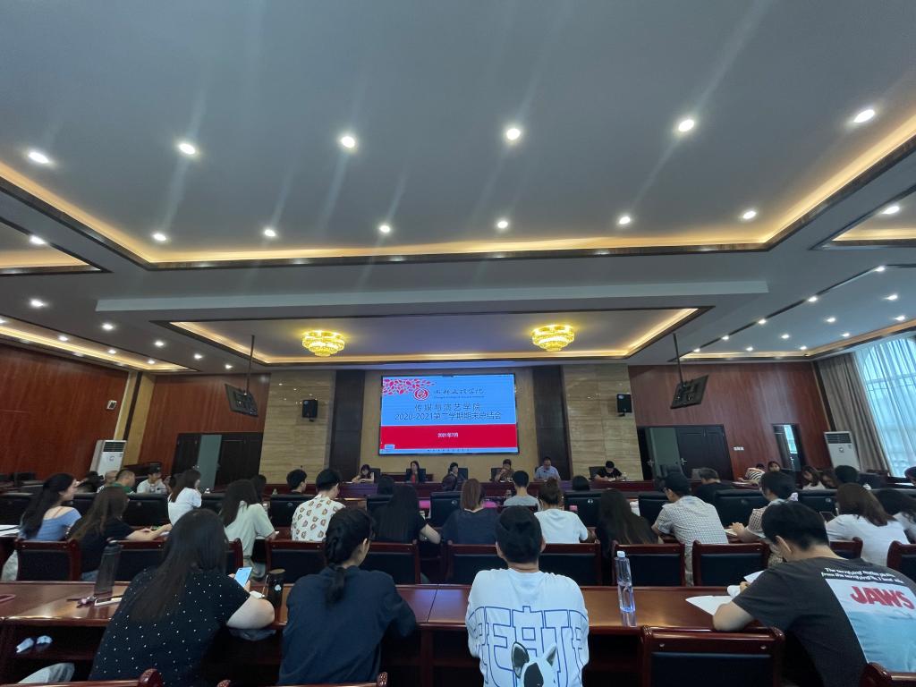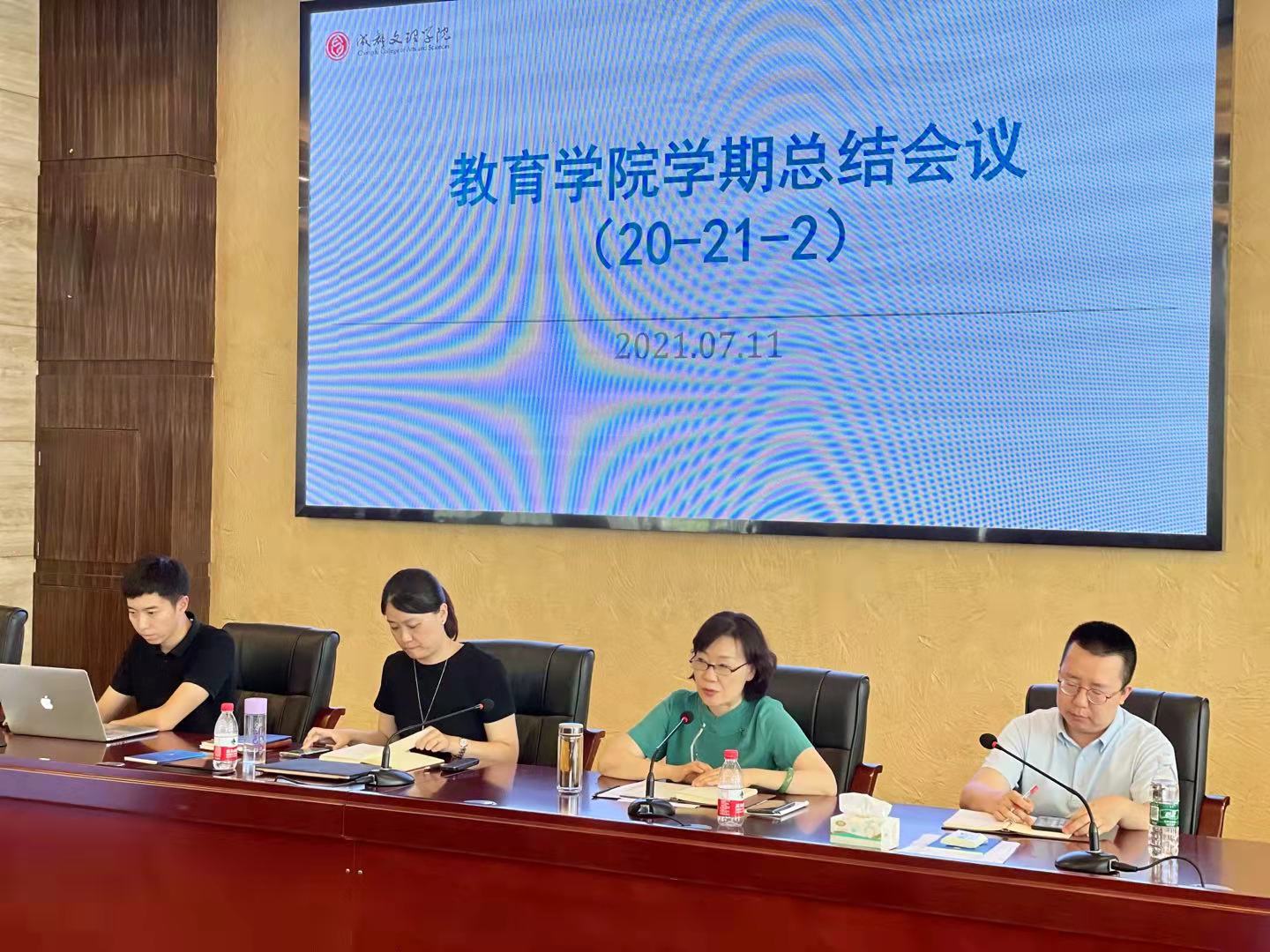 月日上午点教育学院在学工部会议室召开学年第二学期工作总结大会。教育学院院长卢伟党总支书记李明昌院长助理于丹及全体教职工参加本次会议。会议开始首先由学院各个工作组进行学期工作汇报。牟智红、尹凤、潘临锋、杨倩分别对学生日常管理与团学工作、党建与就业、国际化、资助与招生等工作进行汇报。杨辰鸿对教学教务管理工作中学院课程安排、学院监考工作、专升本工作、毕业论文资料审核等工作进行汇报。于丹对大教育实训中心工