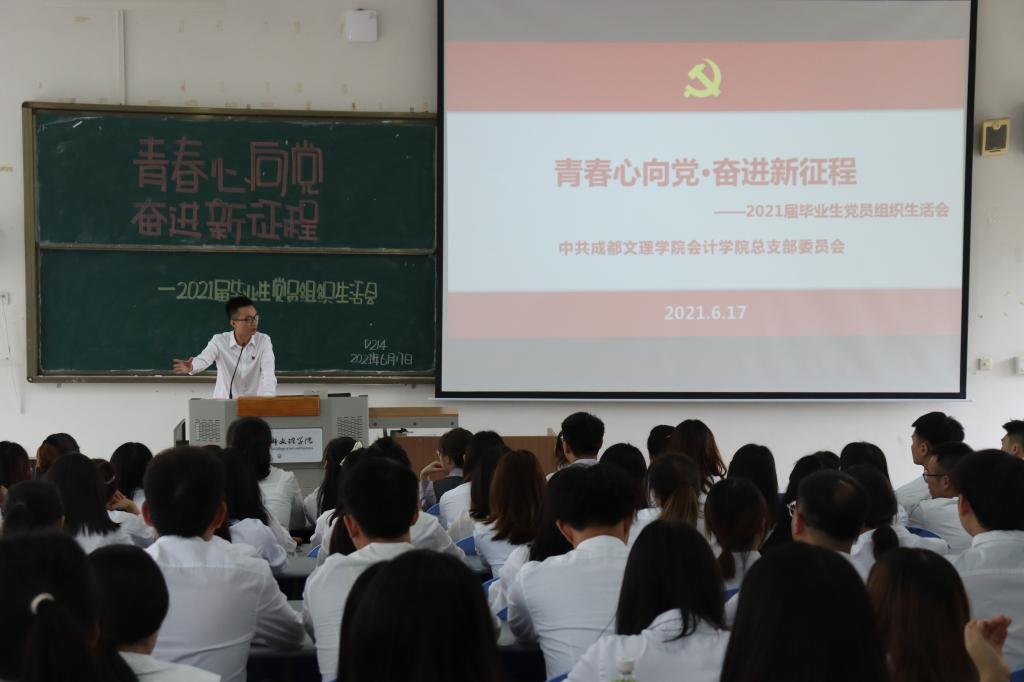 月日下午时分会计学院党总支在行政楼召开青春心向党;奋进新征程届毕业生党员组织生活会。党总支书记吴操学生工作办公室主任孔岩学生一支部书记李晓卫学生二支部书记陈琴学生三支部书记杨佳以及全体师生党员参加本次会议。会议伊始观看党员同志们录制的寄语祝福视频。紧接着优秀毕业生党员代表刘逸坤、吴茜怡、闫琴纷纷发言他们勉励在校党员同志们要拥有积极进取、乐观生活的心态并给出了实习及工作的实用建议鼓励大家提早做好职业