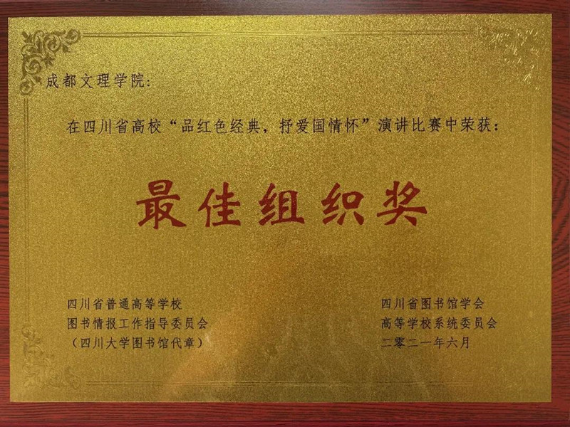 近日图文信息中心组织我校学生积极参与由四川省普通高等学校图书情报工作指导委员会、四川省图书馆学会高等学校系统委员会联合省内各高校图书馆举办的四川省高校品红色经典抒爱国情怀演讲比赛活动。本次大赛的主题为学百年党史做时代担当。月日在四川师范大学现场决赛中我校传媒与演艺学院级表演专业学生韩筱萱的作品;红岩;砺心获得演讲大赛一等奖级播音主持与艺术专业的梁竞儒的作品向上的青年和刘海百的作品百年党史熠熠生辉获