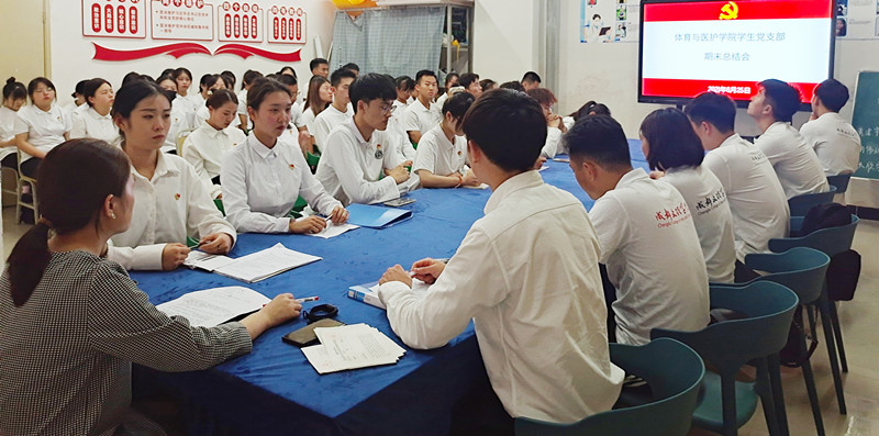 月日晚上时体育与医护学院学生党支部在体育馆开展期末总结大会学生党支部书记陈姣及全体学生党员参与此次会议。会议开始各小组组长针对本学期工作分别进行总结。张欣宇同志对党支部党员发展、内部建设、学习活动组织等工作进行经验梳理找出不足并对下学期支部组织工作开展提出建议。胡伟琳同志就本期的宣传工作新闻稿发表、会议召开、推文宣传工作进行总结各项工作有序开展使支部影响力得到一定提升。随后她总结了班导师工作及青年