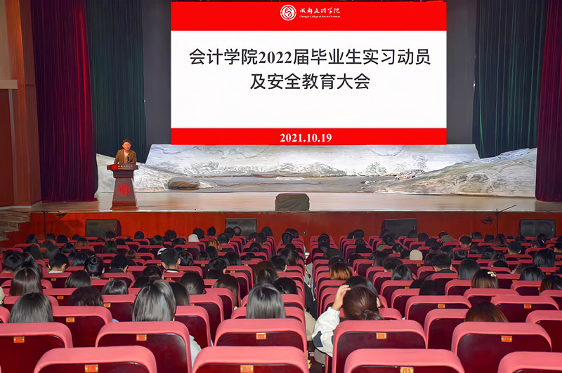 为进一步做好届毕业生实习就业工作帮助毕业生尽早熟悉就业政策、了解就业形势、把握就业机会。月日中午时分会计学院于星空剧场召开届毕业生实习动员暨安全教育大会。会计学院李院长、党总支书记吴操、副院长王晓秋、院长助理刘春华、会计教研室主任许新亮、学生工作办公室主任李晓卫、教师代表董秉伟、毕业班辅导员和全体届毕业生参与本次大会。本次大会由王晓秋主持。大会伊始吴操讲话他首先具体分析了全国毕业生人数及学院历年就