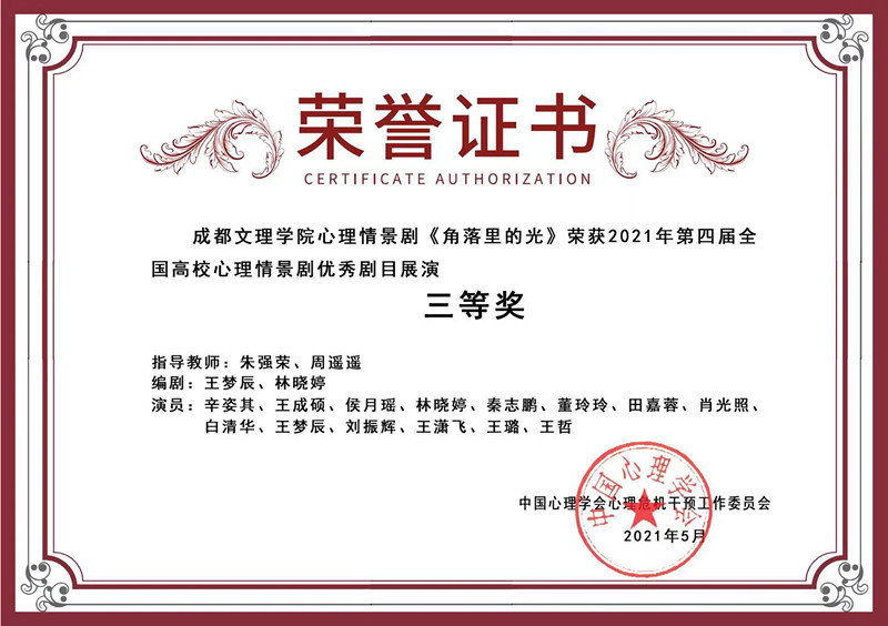 月日日由中国心理学会危机干预工作委员会、全国高校心理委员研究协作组主办广西大学、全国高校心理委员工作平台承办的第四届剧暖心伴你行全国高校心理情景剧大赛在广西大学圆满落幕。由我校大学生心理健康辅导中心教师周遥遥和传媒与演艺学院教师朱强荣共同指导的心理情景剧角落里的光在全国所高校的件参赛作品中脱颖而出荣获全国高校心理情景剧大赛三等奖。大赛开始以来在学生工作部的精心组织下经过学生团队认真准备学院专业教师