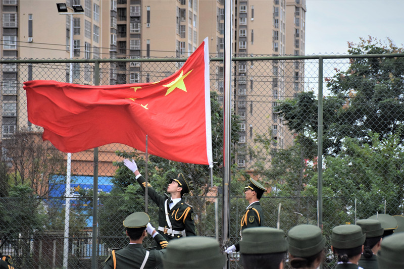 月日早上时分会计学院和外国语学院于文理操场举行了升旗仪式。会计学院党总支书记吴操、外国语学院党总支副书记苏凌函及两个学院的全体辅导员、学生干部、级全体学生参加了此次升旗仪式。升旗仪式开始伴随着歌唱祖国音乐的响起全体肃立。在国旗护卫队的护送下鲜红的五星红旗进场。当振奋人心的国歌响起时现场师生一起高唱双目注视着冉冉升起的五星红旗升旗。随后由会计学院的同学们带来国旗下的朗诵青春托起中国梦铿锵有力的诵读声