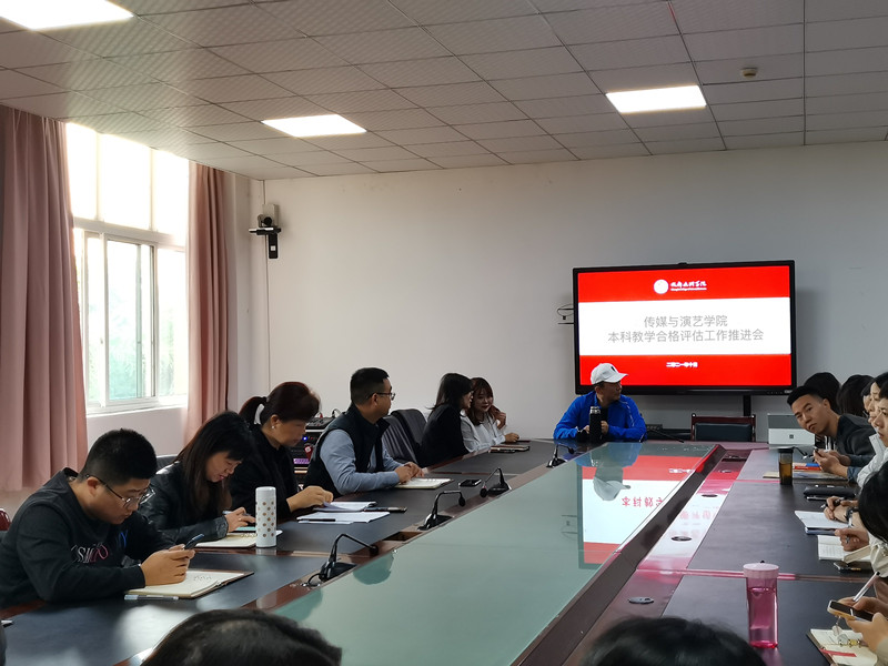 为顺利推进学院本科教学合格评估建设工作促进教育教学管理规范提升内涵发展月日下午时传媒与演艺学院本科教学工作合格评估推进会在行政楼考试指挥中心召开。传媒与演艺学院院长陈燕、党总支书记舒彪、副院长马炼、党总支副书记韩杰、院长助理雷涛、各教研室主任及全体评估报告撰写组成员参加此次会议。陈燕首先宣布了学院评估工作领导小组设置情况及自评报告撰写工作组成员组成情况。她指出评估工作是我们学院的重点工作各位老师要