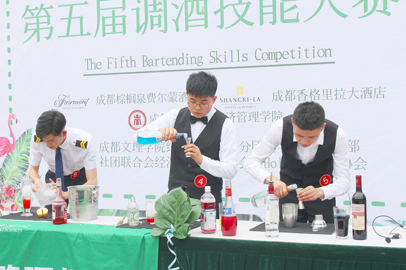 为强化提升学生专业技能及实操能力月日下午时经济管理学院第五届调酒技能大赛决赛于英语角成功举办。经济管理学院副院长程庆、教师二支部书记刘妍、旅游管理教研室主任刘飞、副主任徐飞、酒店管理专业老师张欣然、成都博舍酒店调酒师陈勇到场担任评委。经济管理学院全体辅导员出席活动。主持人宣读比赛规则后陈勇为现场学生进行专业调酒示范。随后十五名参赛选手按三人一组在规定时间内进行调酒技能展示。每位选手得体的装束展现了