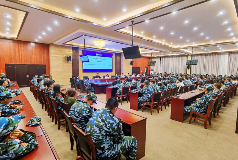 月日上午时我校于操场举办以坚持共产主义信仰争做有为新时代青年为主题的级新生教育思政大会。级学生军训团教官指导员及全体参训学员到场参加。马克思主义学院副院长夏冰主持本次大会。他从三个方面为新生做出教育思政大课专题报告。他提出信仰是精神之基在成长过程中具有关键作用以毛泽东、周恩来、钱学森的伟人事例阐述理想信念的重要性有共产主义的人最幸福新时代青年应该有文化自信做一个有自信、有信仰的人他以疫情期间后援鄂