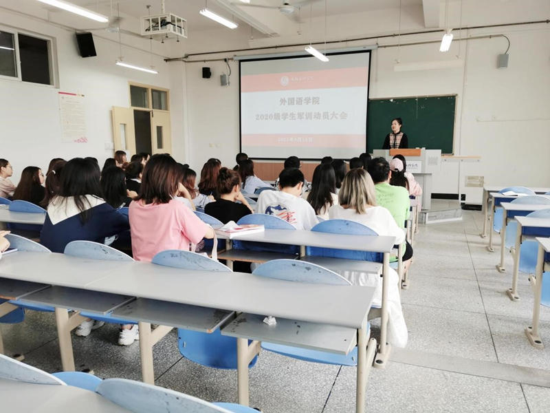 月日下午时外国语学院级学生军训动员大会在主教学楼召开。学院党总支副书记苏凌函、学工办主任徐杏、营教导员赵华及各连队指导员、级主要学生干部参加大会。徐杏主持大会。营教导员赵华作动员讲话。她表示在当前国际形势下加强国防建设刻不容缓军训亦是大学生增强体质进行国防教育的重要抓手。全体学员要在学习文化知识的同时培育战斗精神在服从命令中明白组织纪律的重要性在刻苦训练中磨练坚韧意志在关心互助中团结齐心真正成为一
