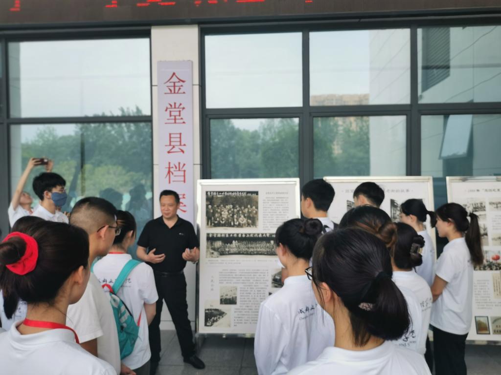 月日时分体育与医护学院独角兽学生干部训练营学员前往金堂县档案馆开展学党史;感党恩;跟党走主题教育活动体育与医护学院学工办主任陈姣、分团委书记杨瑞、辅导员周叶、王巧玉、伍丹、李洋以及独角兽学生干部训练营成员参加了本次活动。在金堂县档案馆副馆长邓斌武的带领下成员们走进美丽金堂、历史走廊、初心永驻和东进步伐四个展厅聆听档案馆工作人员的细致讲解。金堂地区在中国共产党的领导下进行艰苦卓越的革命、辛勤探索金堂