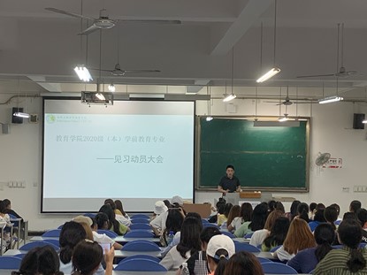 月日时教育学院于主教学楼召开学前教育专业级本科幼儿园见习动员大会。大会由学前教育专业教师朱海鸣主持教育学院院长卢伟学前教育专业教师张丹、陈芸、李强、教学秘书杨辰鸿以及级学前教育专业本科全体同学参加。为了更好的落实本次学前教育见习工作各项要求激发同学们的学习热情朱海鸣分别从见习的重要性、见习目的、见习内容、见习时间安排、见习注意事项、指导教师分组、疫情期间的特殊要求等七个方面作详细说明。朱海鸣强调: