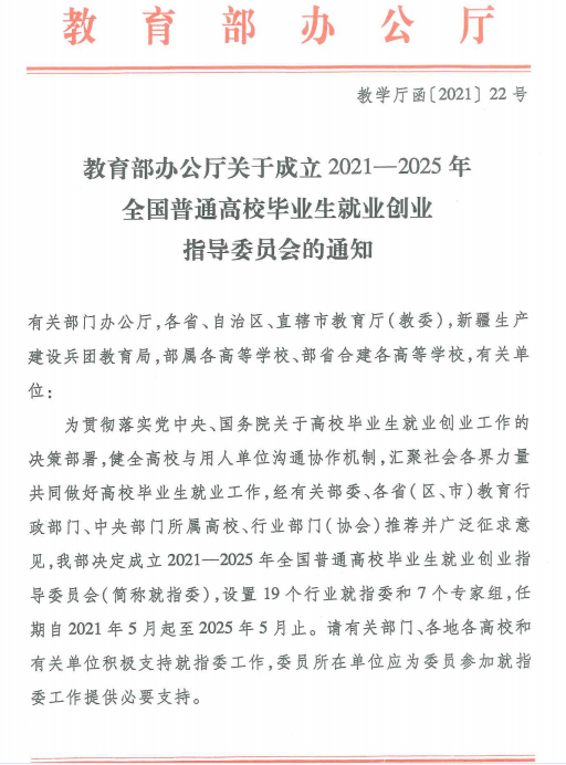 月日教育部办公厅印发教育部办公厅关于成立年全国普通高校毕业生就业创业指导委员会的通知教学厅函号文法学院副院长冉华庆教授当选全国普通高校毕业生就业创业指导委员会文旅艺术行业语言类就业指导组委员。文法学院供稿