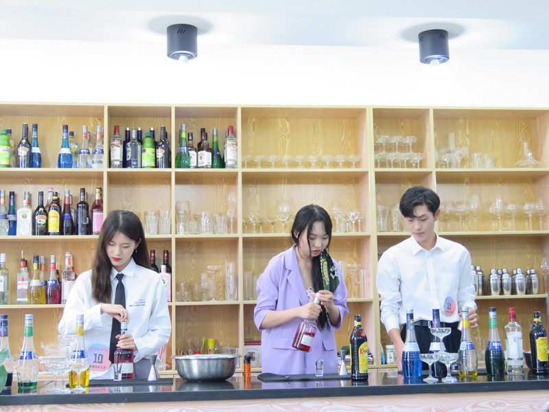 为提升酒店管理专业学生实操技能月日下午时经济管理学院于第三教学楼酒水室举办第五届调酒技能大赛初赛。经济管理学院教师二支部书记刘妍、学生第三党支部书记苏燕林、酒店管理专业老师张欣然、教育学院学工办主任尹隆龙及莅临现场担任评委。在主持人宣读比赛规则后名参赛人员按顺序三人为一组在规定的时间内进行调酒技能及成果展示。调配结束评委们通过对参赛者的调配技法、姿态礼仪、所调酒的成色和味道等方面进行综合考量并打分