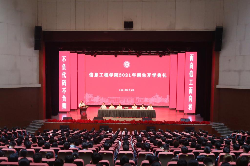 白露至秋意浓又是一年丰硕的金秋。月日中午信息工程学院举行了年新生开学典礼院长胡念青、党总支书记贾冲、院长助理陈坚、学生工作办公室主任尹隆龙、党总支组织员郭晗昕、教师党支部书记刘刚出席典礼学院全体教师和名新生到场参加。学生第三党支部书记曾宇主持典礼典礼在庄严的国歌声中拉开序幕。贾冲致辞。他代表学院向名新生表示热烈的欢迎。贾冲指出作为大学生如何不虚度时光?一是既要修学更要修德二是懂得反思学会坚守三是脚