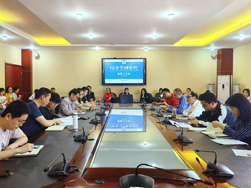 月日经济管理学院于行政楼第二会议室召开了全院教职工大会。经济管理学院院长蒋和胜党总支书记李江副院长李瑞强、程庆出席会议全院教职员工到场参加。蒋和胜首先带领大家学习了习近平总书记对新时代教师队伍的要求及教育部下发的新时代高校教师职业行为十项准则要求全院教职工狠抓自身纪律作风贯彻落实三风建设第二带领大家学习了成都文理学院年工作要点强调要在各项工作中争创一流、打造特色第三带领全体学习了经济管理学院年工作