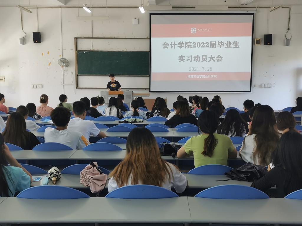 月日下午时会计学院于主教学楼召开了届毕业生实习动员大会会计学院院长助理、会计教研室主任刘春华会计教研室副主任许新亮专职教师代表杨爱香教学秘书陈豪辅导员王丹参加此次活动此次大会由许新亮主持。大会开始许新亮首先代表学院就实习动员大会发表了讲话。他强调同学们要认清就业形势树立正确的就业观正确评估衡量自身专业素质高低选择就业单位要注重双向选择要实事求是从自身条件出发要树立先生存后发展先就业后择业的理念。他