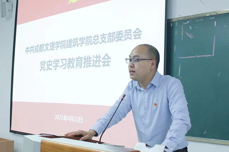 月日下午时建筑学院党总支于举行了党史学习教育推进会。学院全体师生党员参与本次会议会议由党总支书记贺元烨主持。会上贺元烨本着学史明理、学史增信、学史崇德、学史力行的原则对党的历史进程与发展作出详细讲解使全体师生党员对党的历史有了更深刻的认识。同时他也结合学院实际聚焦学习重点、拓展生动材料教育引导全体师生党员本着把握正确导向、发扬优良学风、注重融会贯通、坚持创新求实、坚持分层分类、突出育人特色的基本原