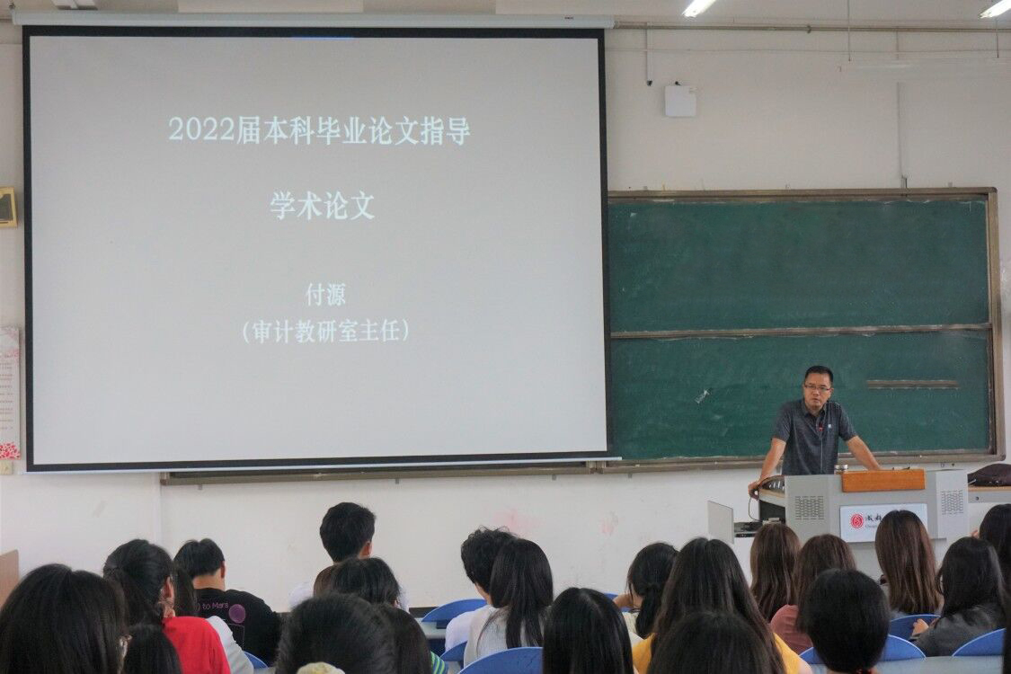 为进一步规范毕业论文格式加强毕业论文撰写质量月日时会计学院于主教学楼开展了针对届毕业生学术论文案例分析写作指导专题讲座审计学教研室主任付源为主讲人。讲座伊始付源点明主题指出毕业论文是对学生综合素质的全面考核也反映了教师的教学水平、学校的办学水平及办学质量通过事例分析充分阐述了大学生毕业论文的重要性。他从论文结构、案例及数据选取、论文内容、绪论和查重率五个撰写要点入手详细地讲解了论文的基础架构和内容