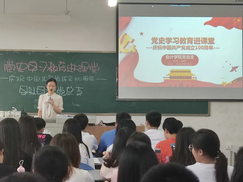 为庆祝中国共产党成立一百周年会计学院党总支精心组织开展党史学习教育进课堂活动。月已开展次活动教师党员杨爱香、顾永菊、罗婷分别作为主讲人级、级学生参与此次活动。月日杨爱香在行政楼给级会计学班的同学讲述了与党和国家共命运的老会计张同辉的故事。月日顾永菊在行政楼给级会计学班的同学讲述了中共一大与南湖红船的故事。月日罗婷在行政楼给级审计学班的同学讲述了党旗下的财政征程、红色税收肇始的故事。通过这些微党课的