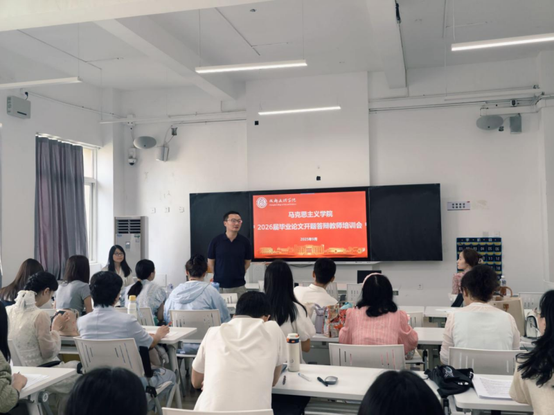 马克思主义学院思想政治教育专业2026届本科毕业论文开题答辩如期举行,每组安排3名答辩教师与1名答辩助理,学生依次从选题背景与意义、文献综述、研究主要内容与方法、研究条件及存在问题等方面进行汇报。